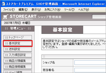 ここで入力された内容は、ブラウザのタイトルバーや各ページの画面下部、受注メールなどのショップ名表示に使用されます。